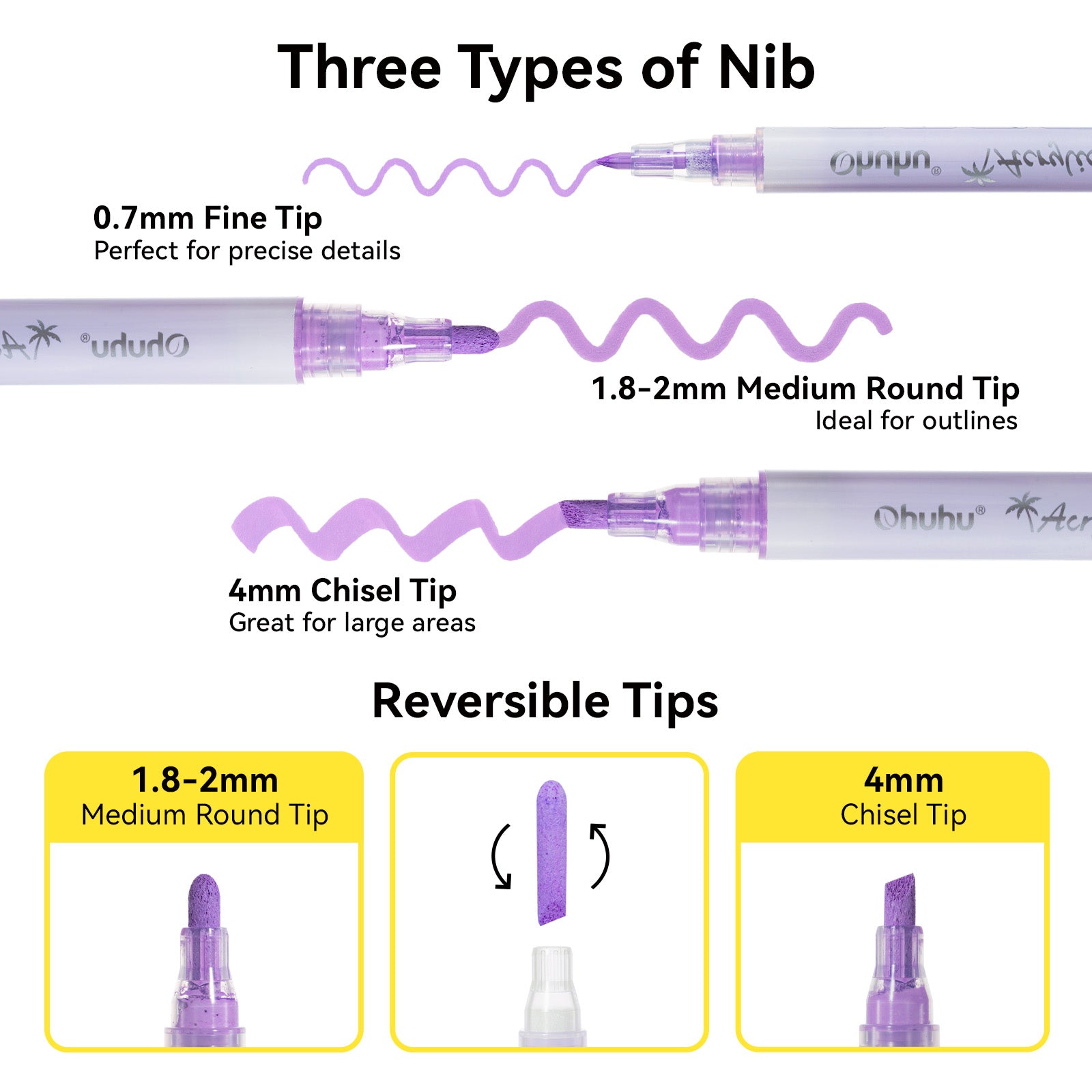 Discover the Ohuhu Acrylic Markers 24 Colors 48 Pack, featuring 24 fine and 24 medium round tip markers in matching vibrant colors. These single-tip markers offer high-opacity, waterproof, and lightfast ink, perfect for use on various surfaces like canvas, wood, plastic, and more. Whether you’re crafting, painting, or personalizing items, this set delivers smooth, consistent results. With large-capacity ink and versatile performance, it’s perfect for artists of all levels. Upgrade your creative tools or give the ideal gift for any art enthusiast with Ohuhu!