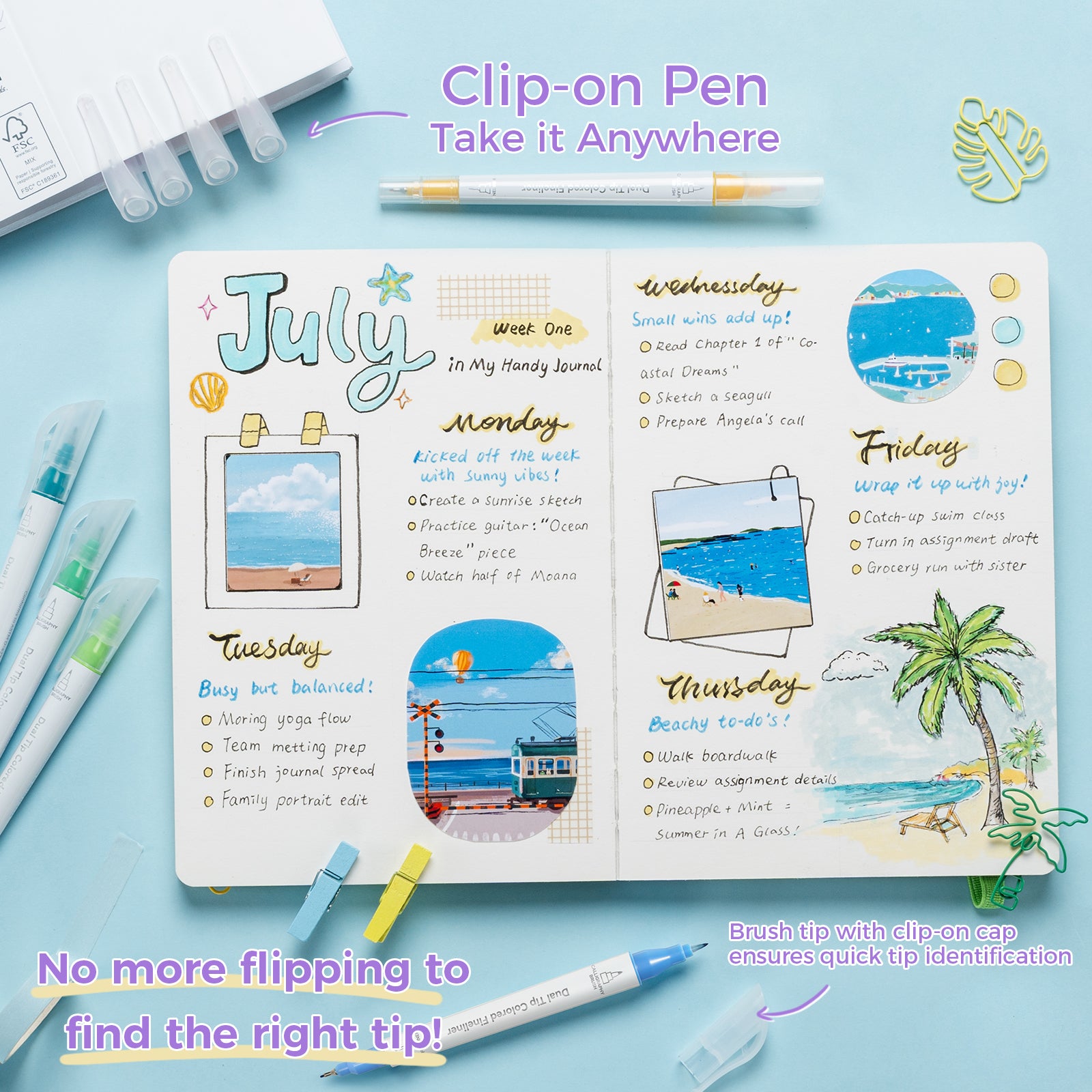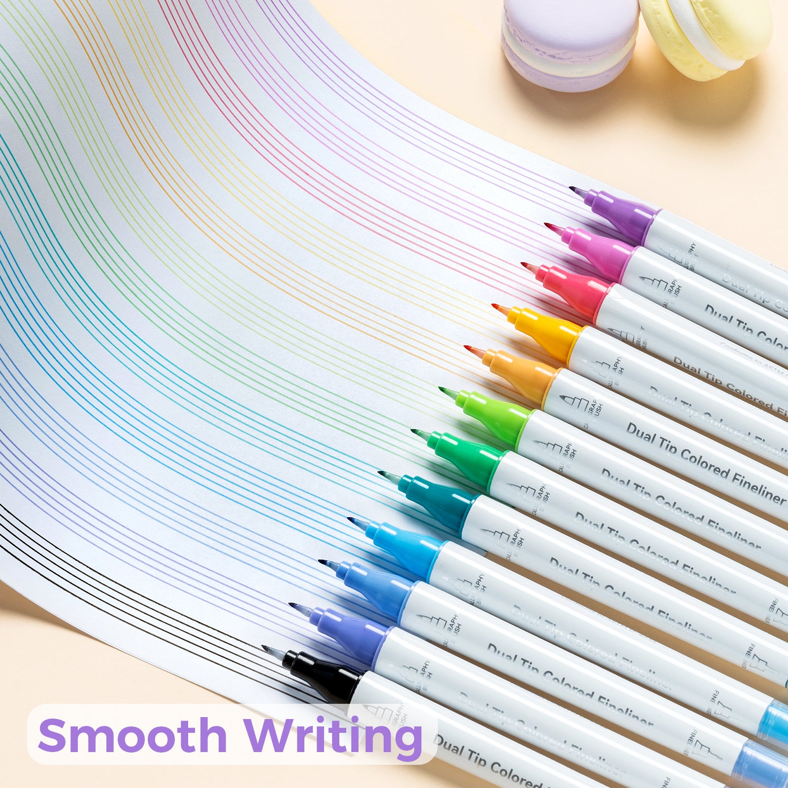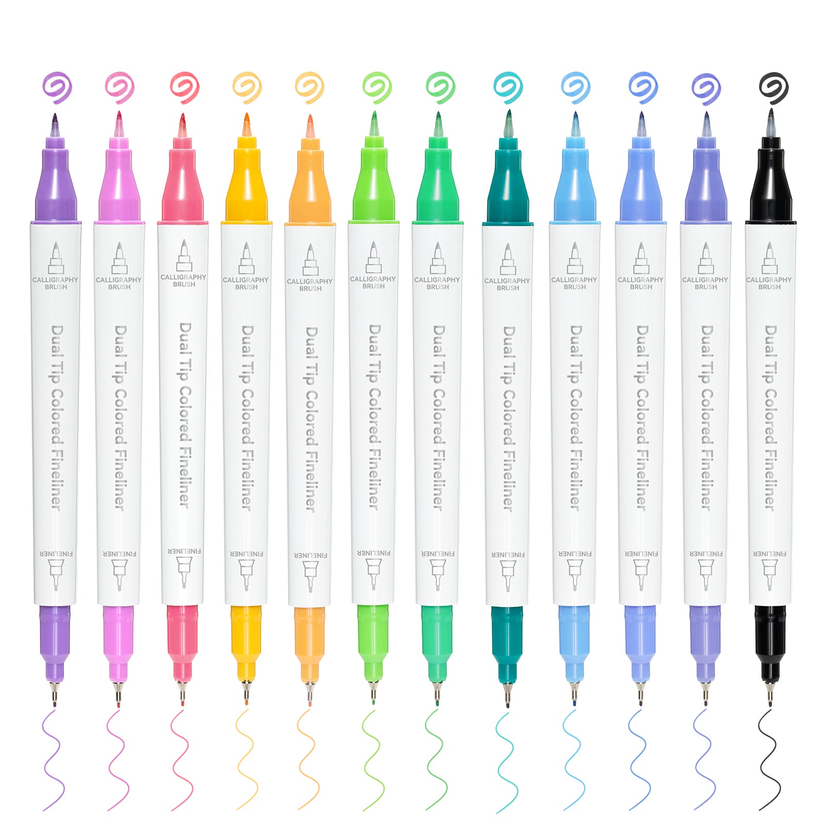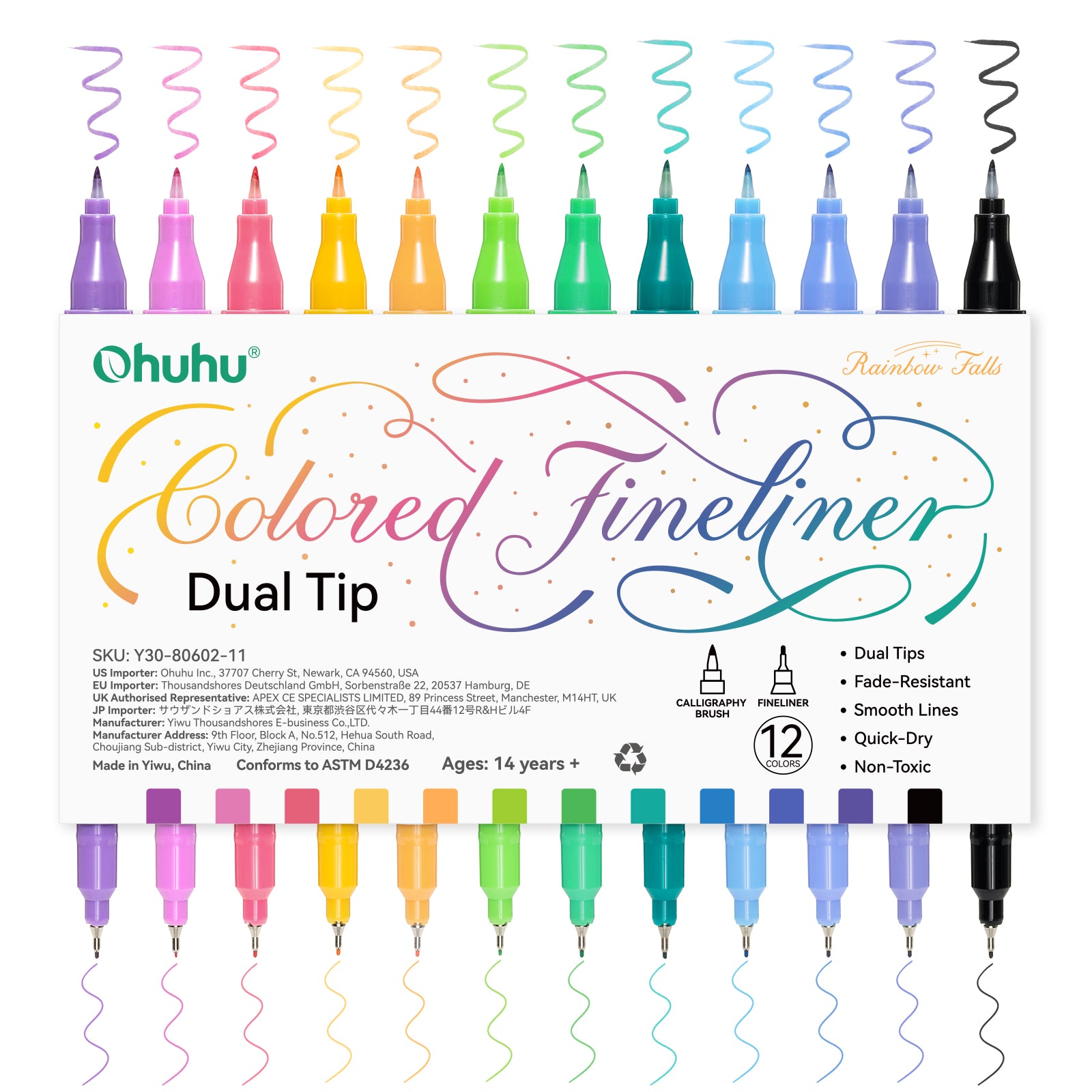Ohuhu Colored Fineliner & Brush Pens, 12 Colors combine precision and versatility with dual tips. The fineliner tip is perfect for detailed lines, while the brush tip creates bold strokes for calligraphy and journaling. With waterproof, alcohol-proof pigment ink and 12 vibrant colors, these pens are ideal for drawing, sketching, bullet journals, and creative projects.