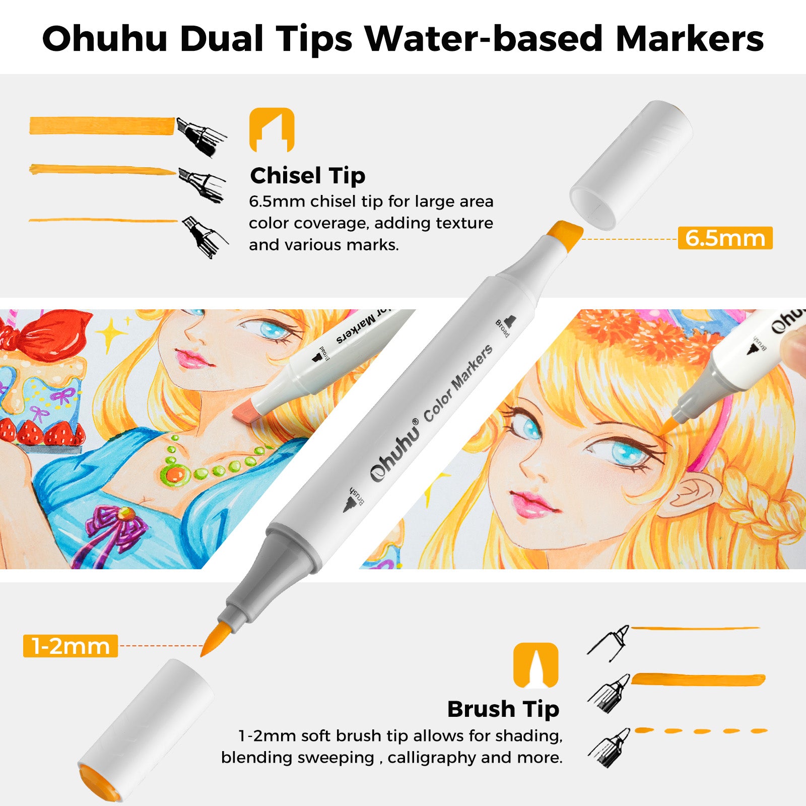 Ohuhu Dual Tips Water-Based Art MarkersOhuhu Dual Tips Water-Based Art Markers
