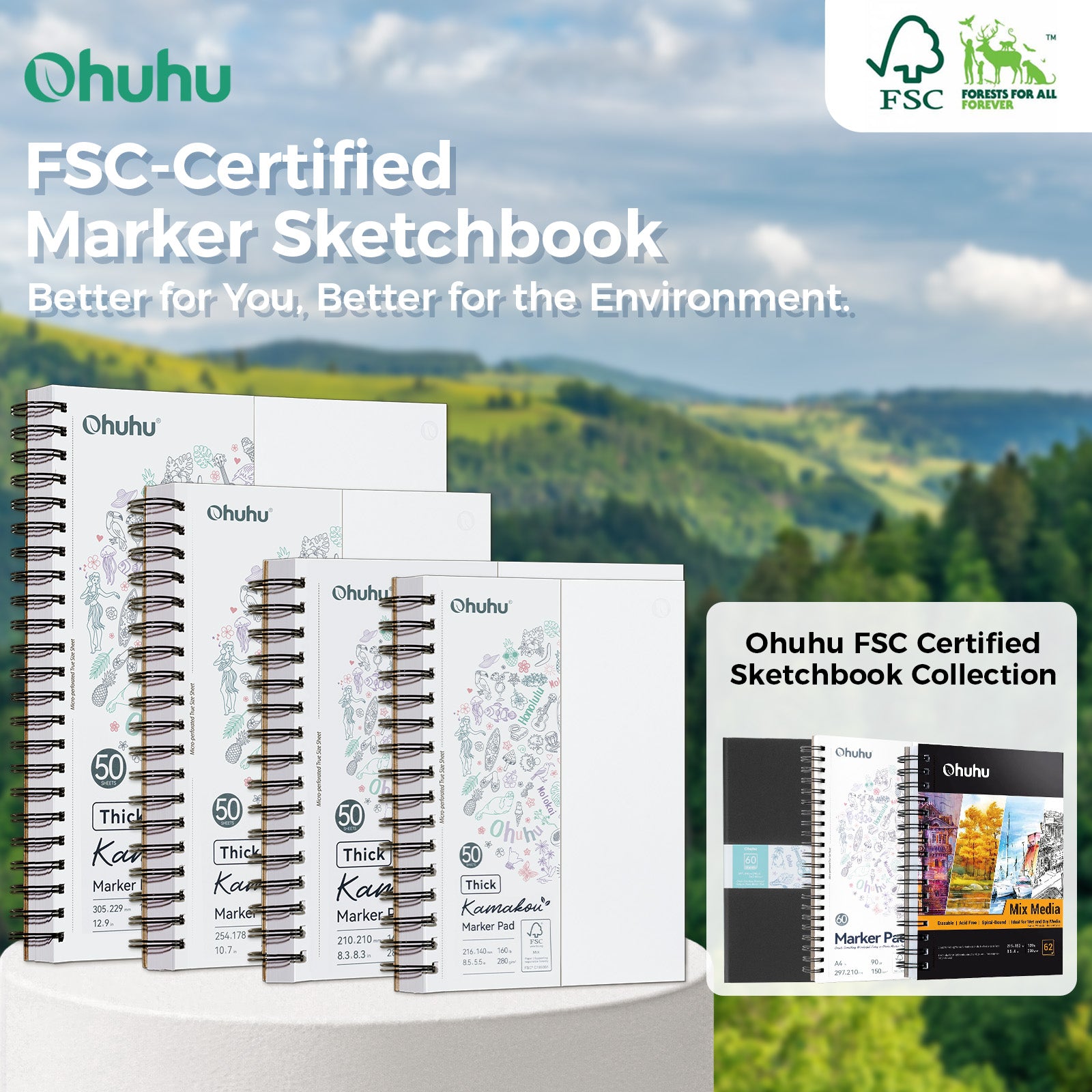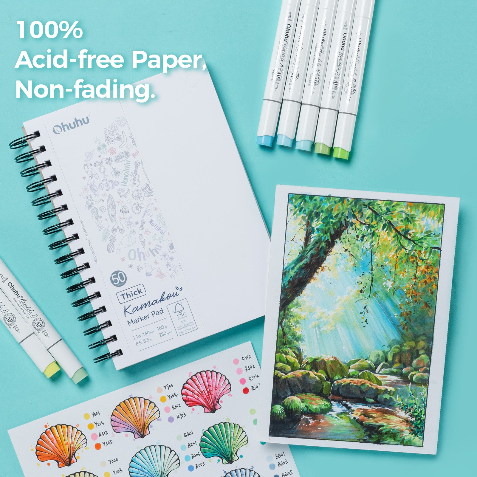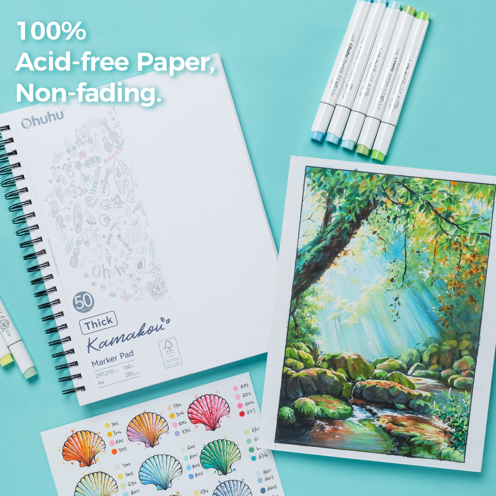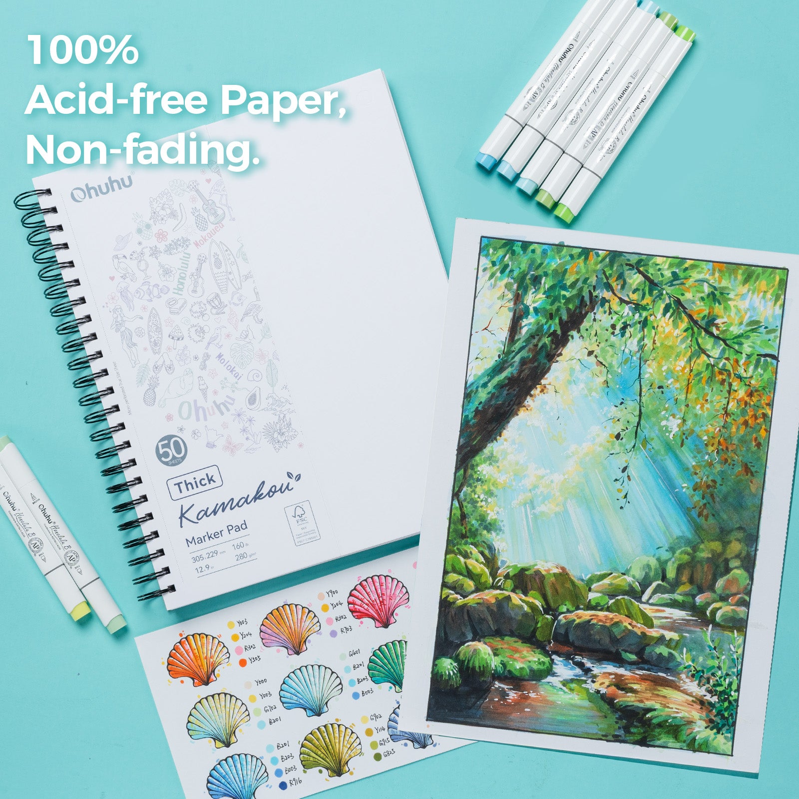 Ohuhu Heavyweight Bleedproof Double-Sided Marker Pad, Spiral-Bound – Kamakou