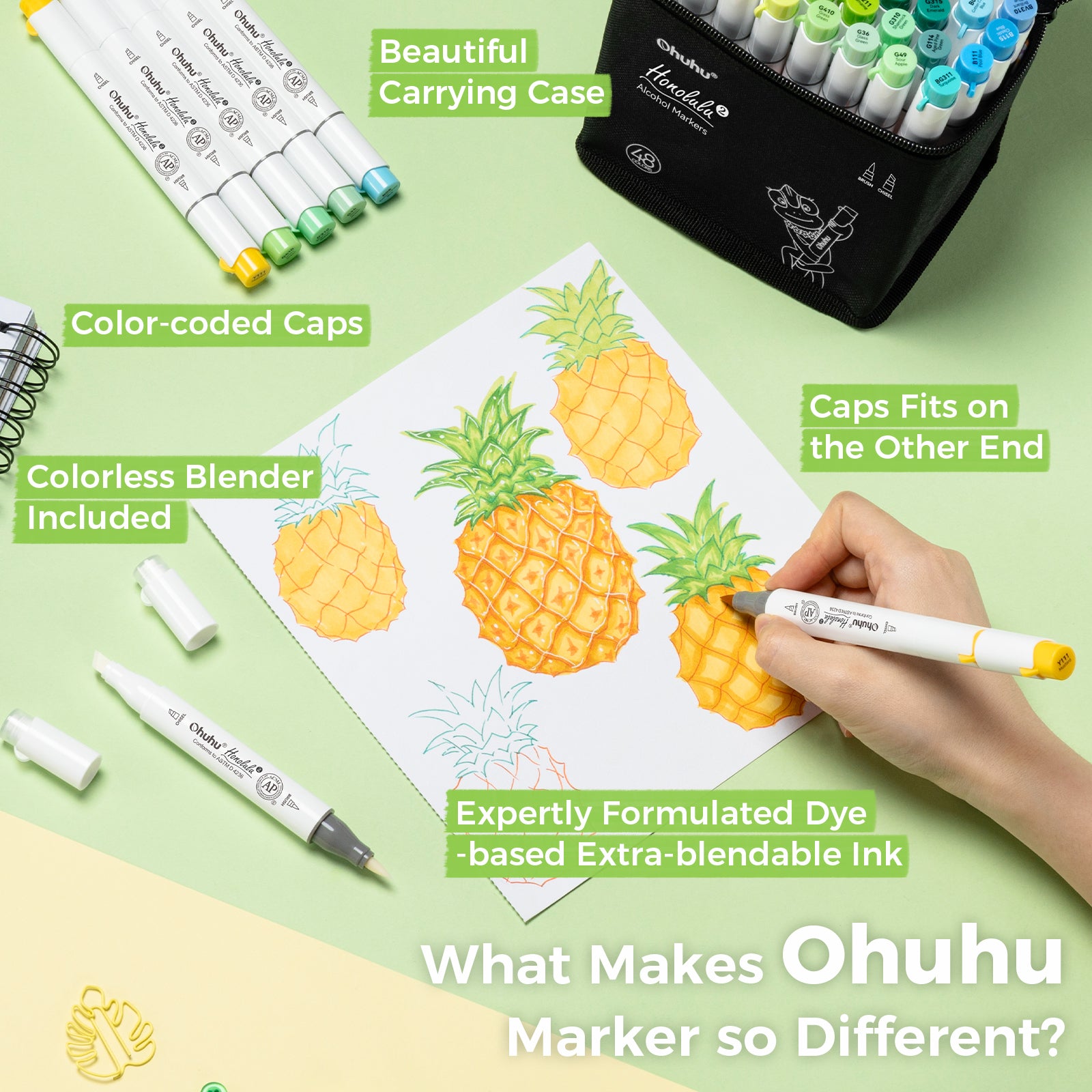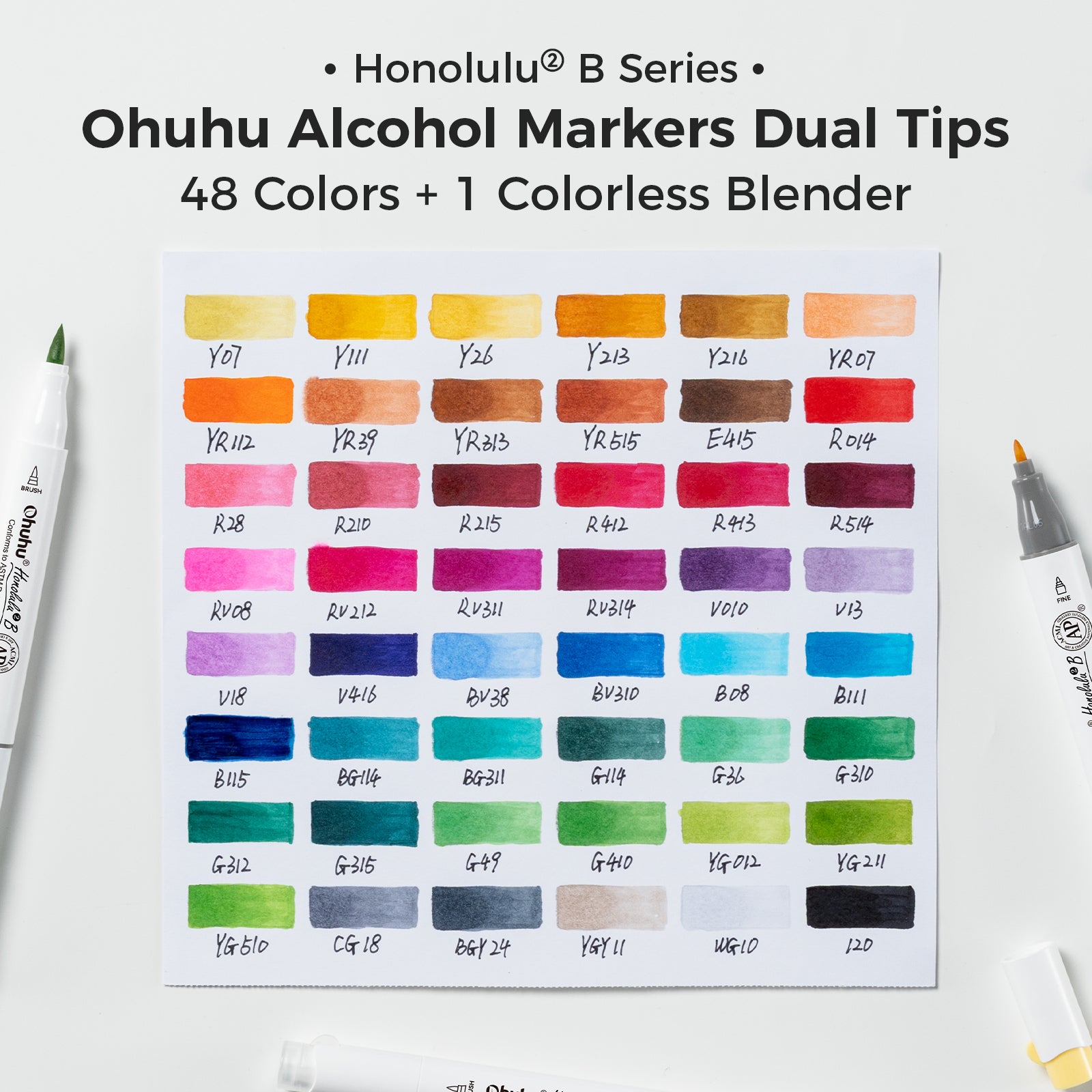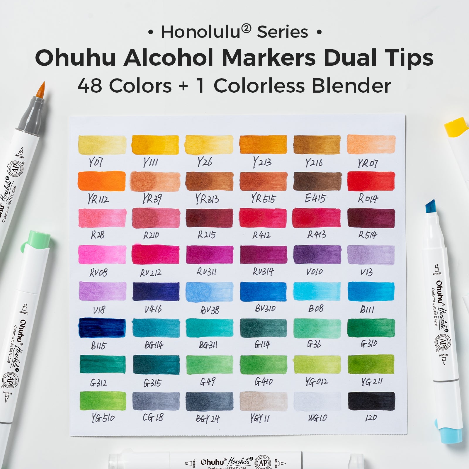 Ohuhu Honolulu² 48 Basic Colors Dual Tips Alcohol Art Markers
