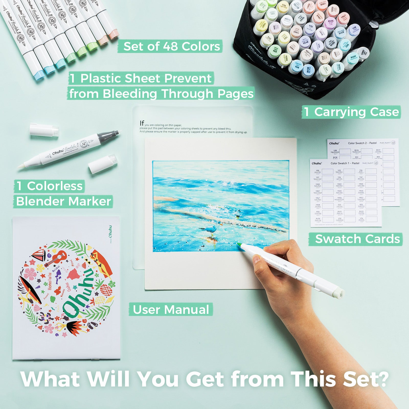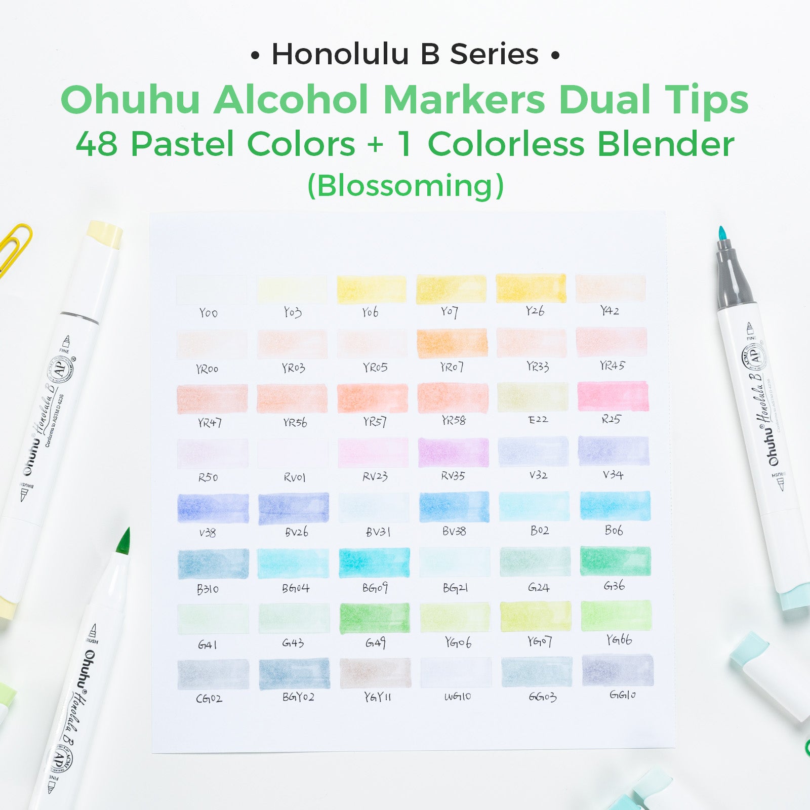 Ohuhu Honolulu New 48 Pastel Colors Dual Tips Alcohol Art Markers – Blossoming