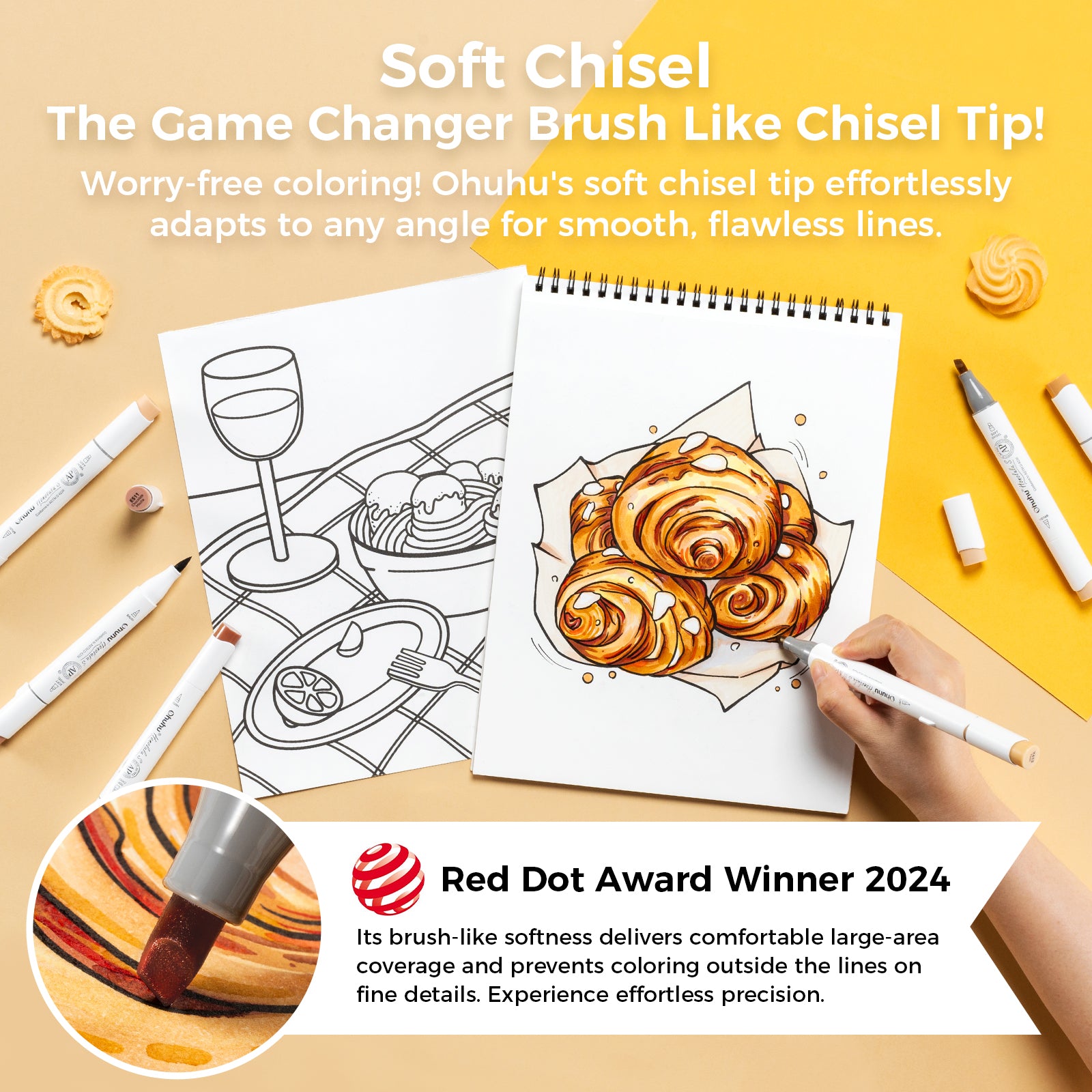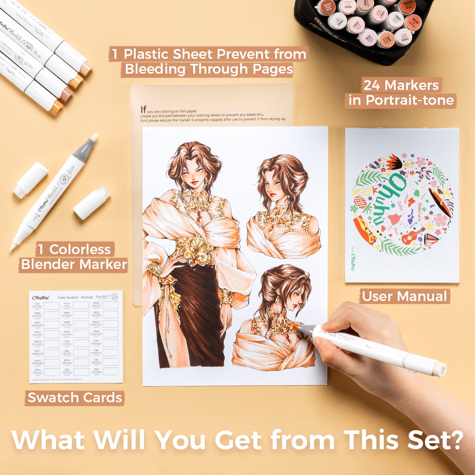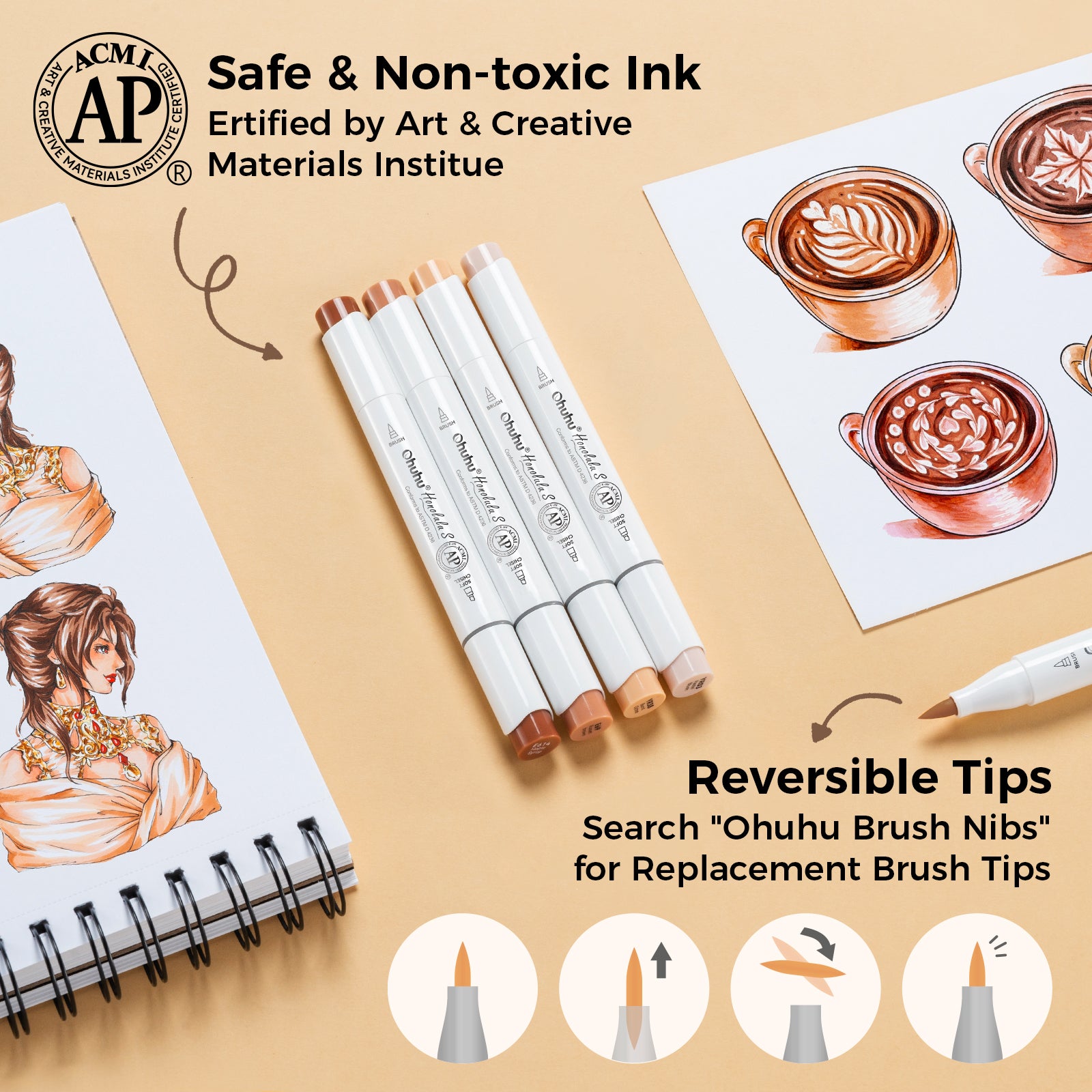 Ohuhu Honolulu S 24 Skin Tone Colors Dual Soft Tips Alcohol Art Markers, Brush & Soft Chisel