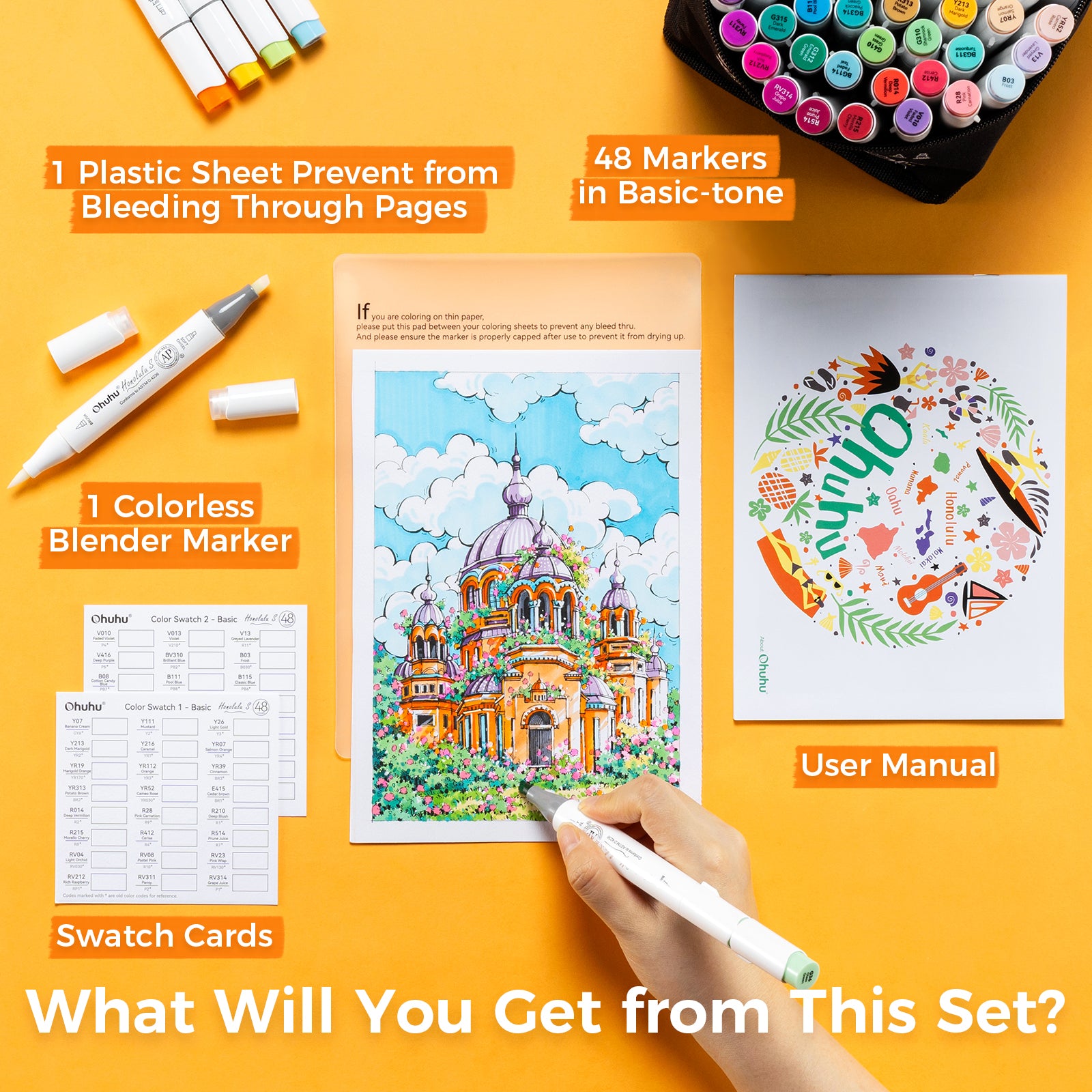Ohuhu Honolulu S 48 Colors Dual Soft Tips Alcohol Art Markers, Brush & Soft Chisel