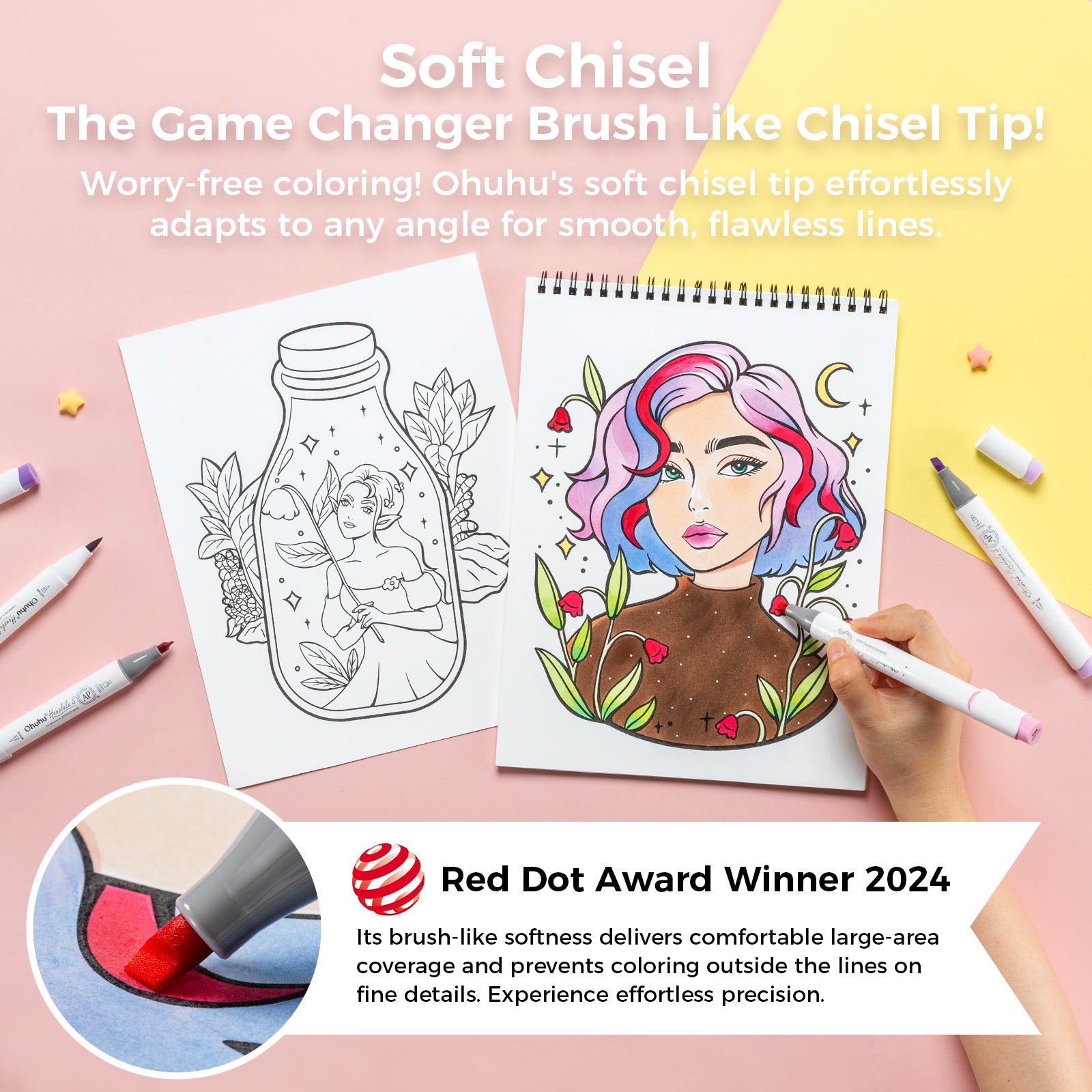 Ohuhu Honolulu S 60 Illustration Tone Colors Dual Soft Tips Alcohol Art Markers, Brush & Soft Chisel