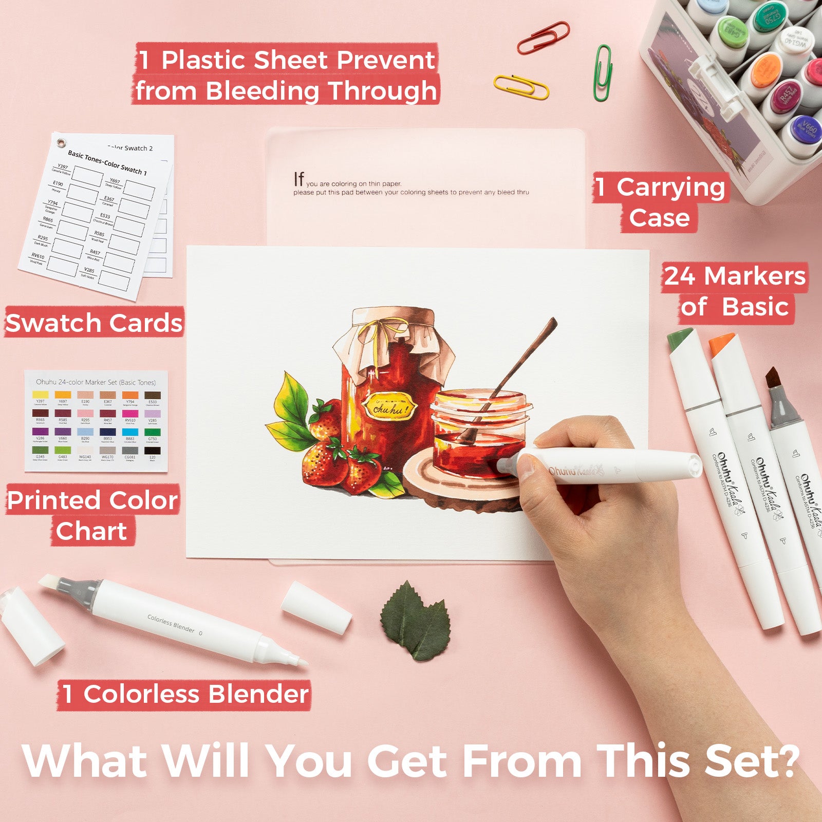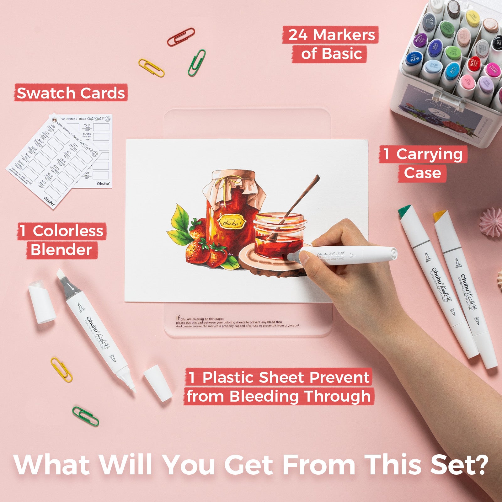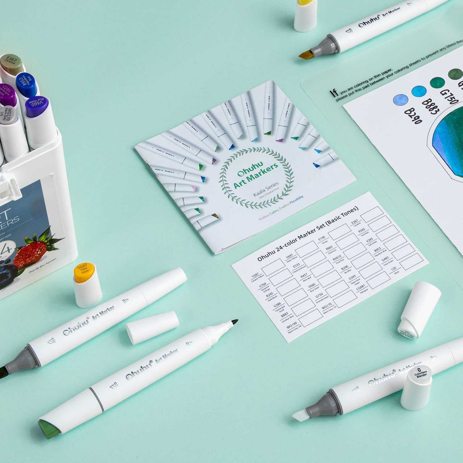 Ohuhu Kaala Slim Broad and Fine Dual Tips Alcohol Art Markers – 24 Basic Colors