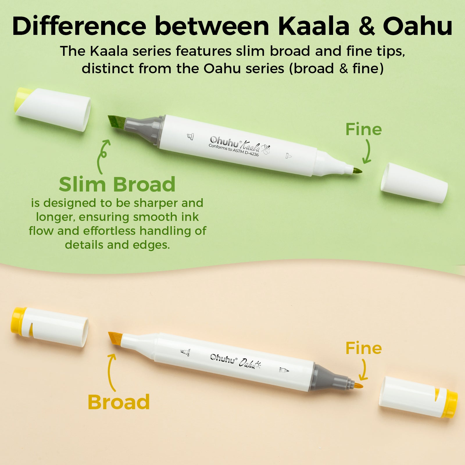 Let your creativity flow with Ohuhu Kaala Four Tones Slim Broad and Fine Dual Tip Alcohol Art Markers! Enjoy double the fun with two tips: a broad chisel tip for bold, sweeping strokes and a fine tip for drawing crisp, precise details. With 24 vibrant, alcohol-based colors to choose from, blending and shading are effortless and the ink dries instantly. Create masterpieces with ease and let your imagination run wild!