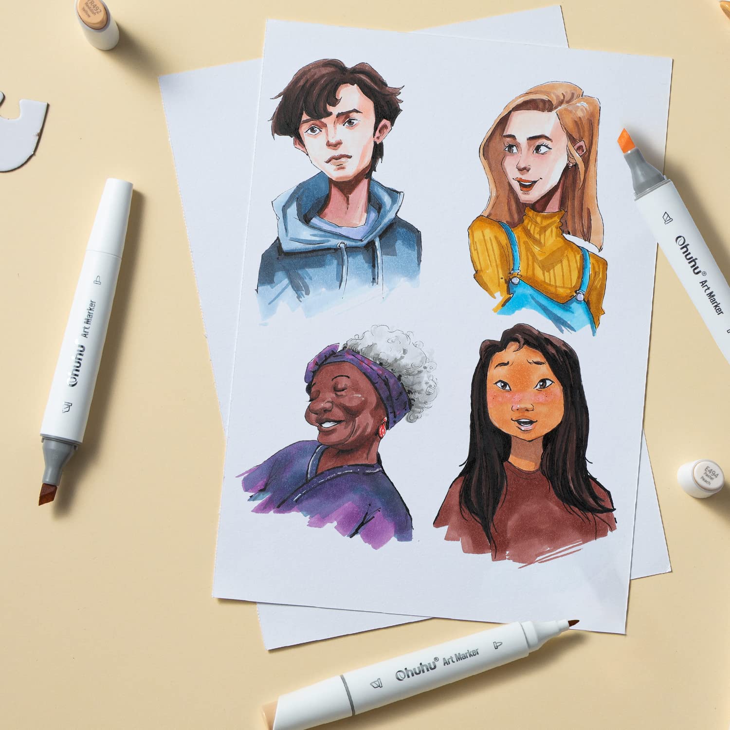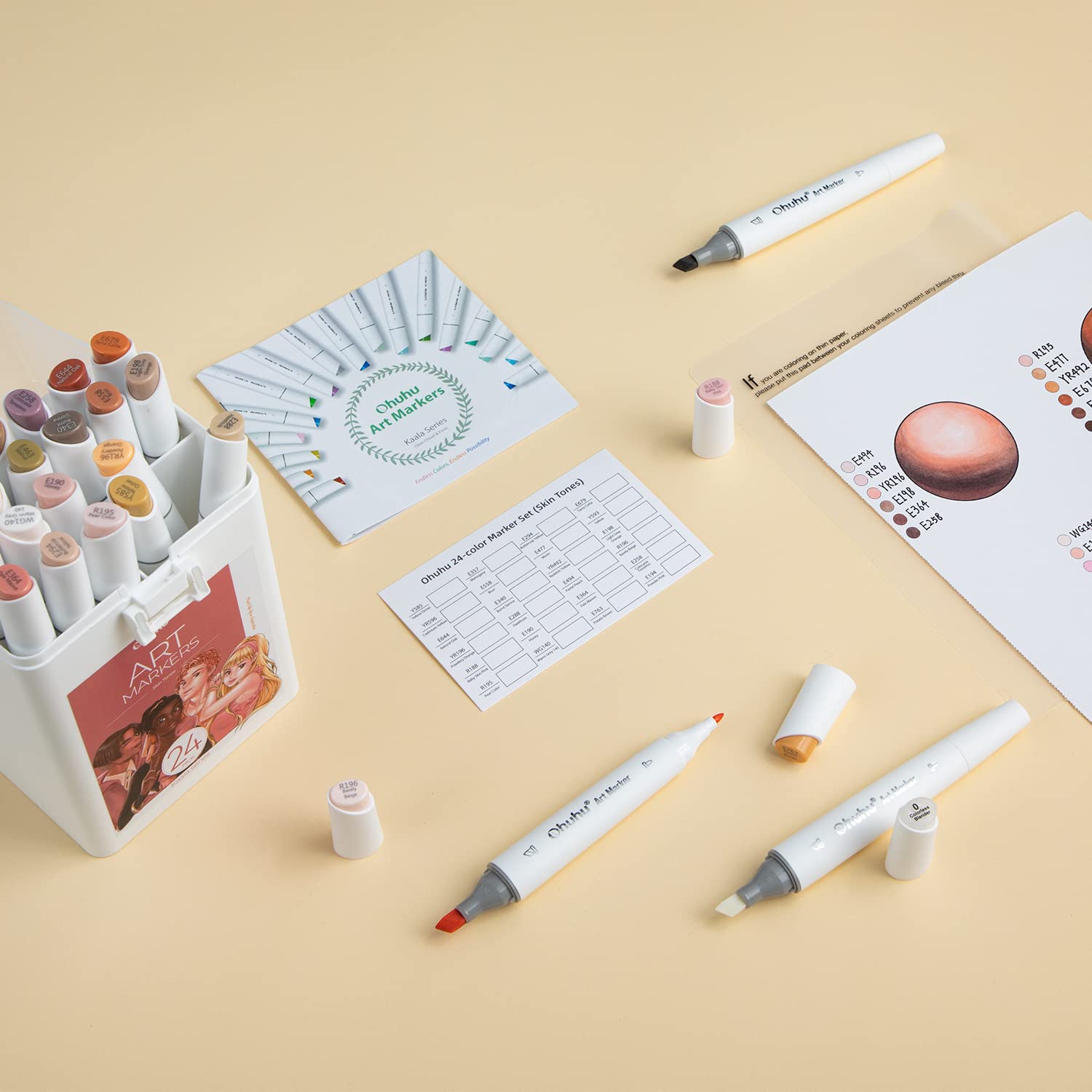 Ohuhu Kaala Slim Broad and Fine Dual Tips Alcohol Art Markers-24 Color Skin Tone