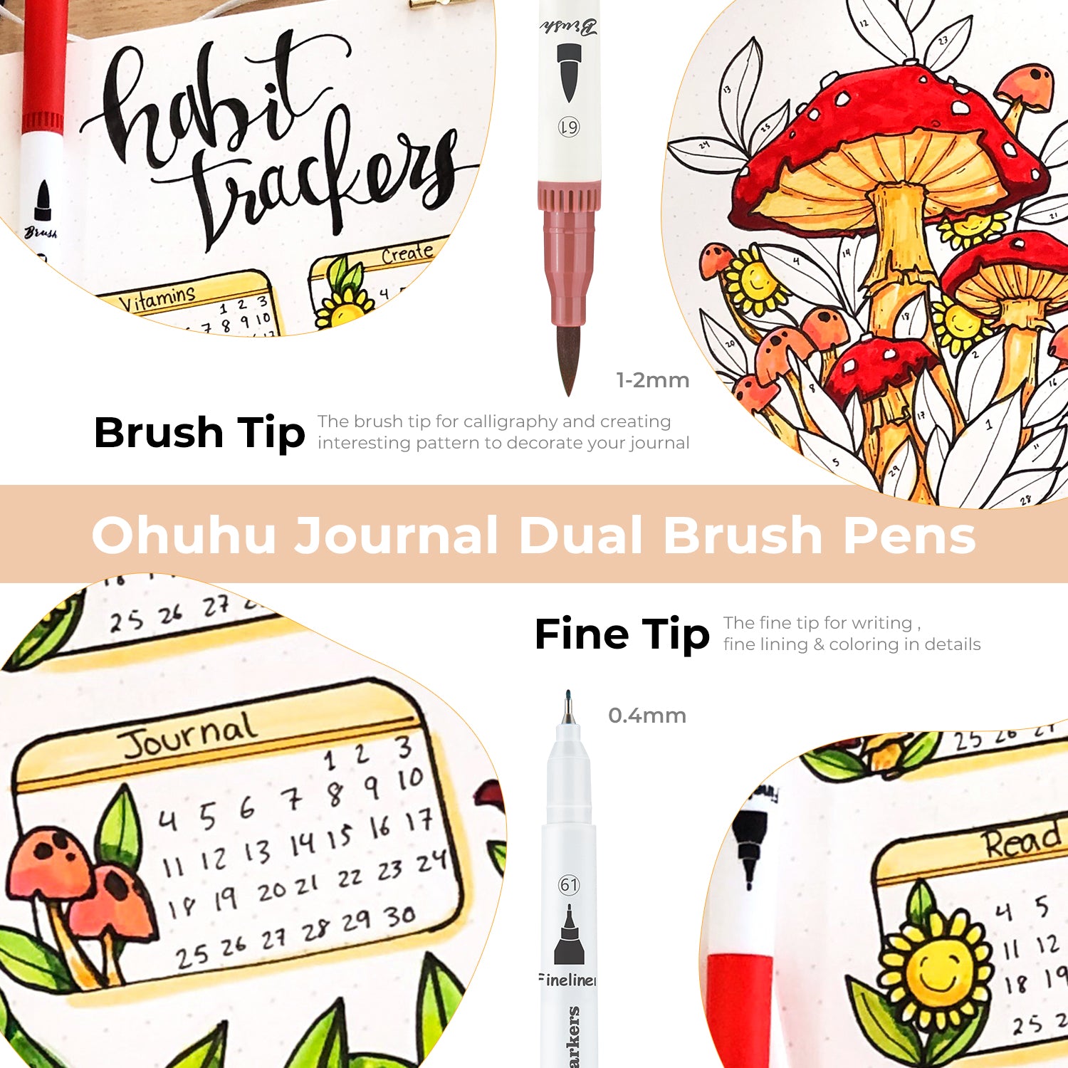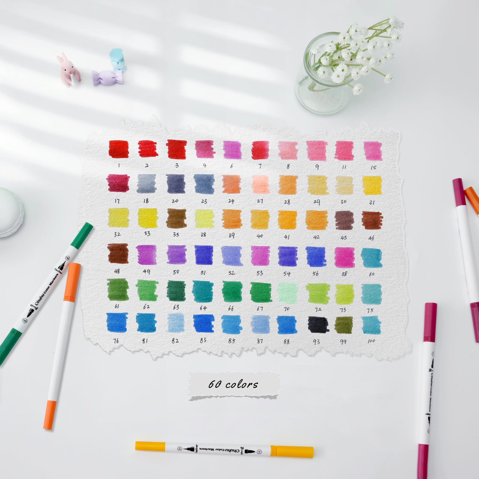 Ohuhu Maui 60 Colors Dual Tips Water Based Art Markers, Brush & Fineliner