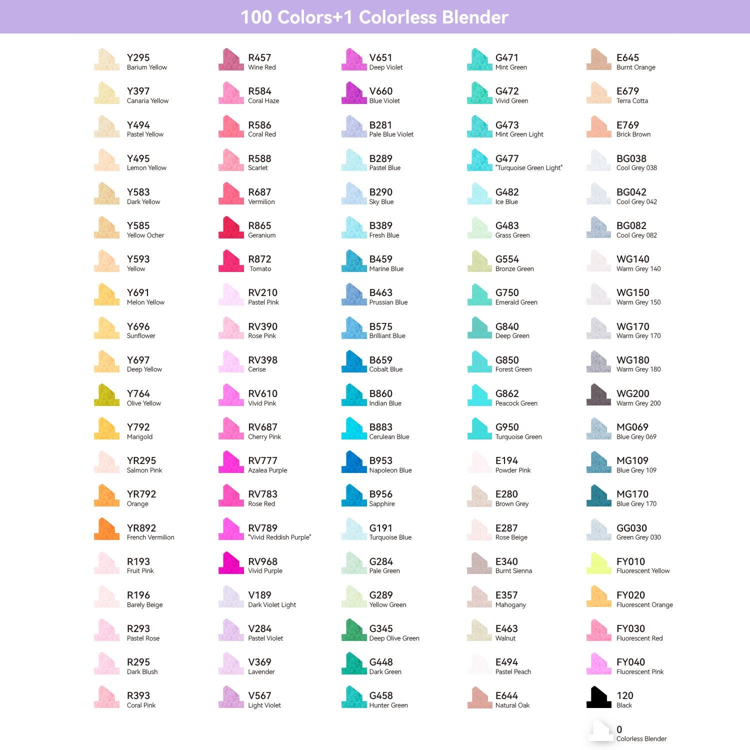 Ohuhu Oahu 100 Colors Dual Tips Alcohol Art Markers, Fine & Chisel