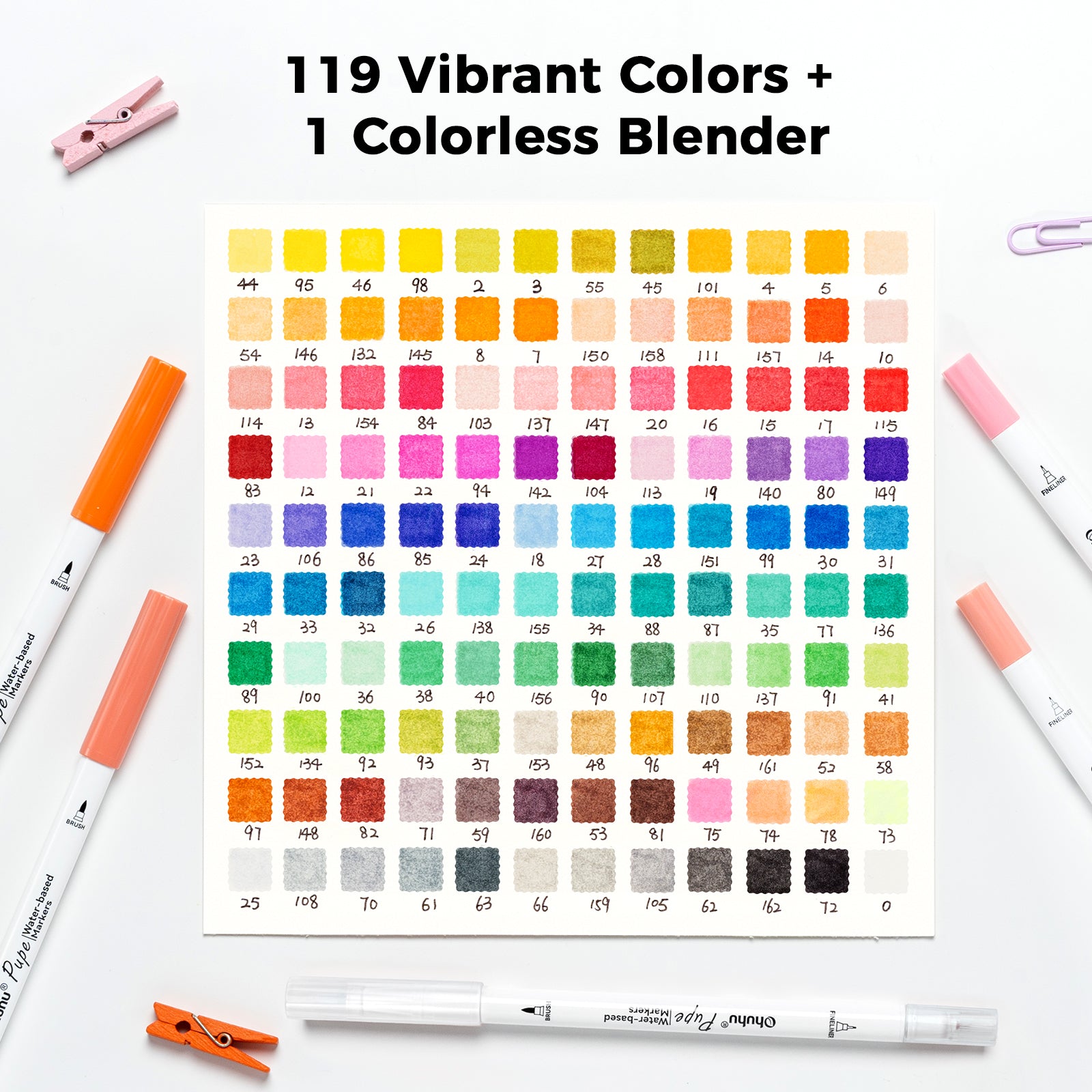 Ohuhu Pupe Paper-friendly (No Peeling) Brush and Fineliner Dual Tips 120 Colors Water-based Coloring Markers