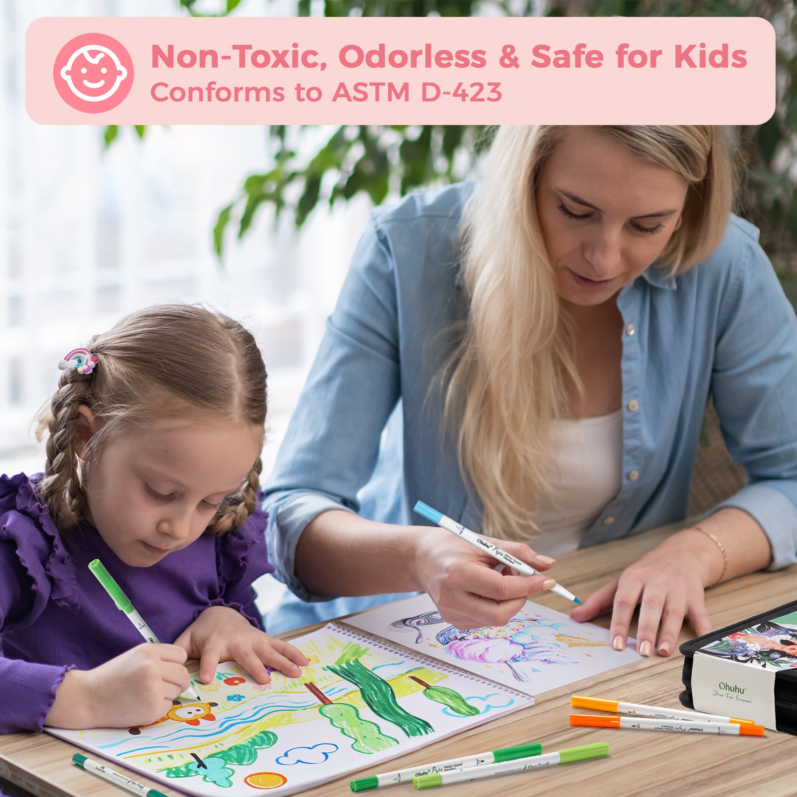 Ohuhu Pupe Paper-friendly (No Peeling) Brush and Fineliner Dual Tips 120 Colors Markers offer smooth, vibrant coloring without damaging your paper. With a flexible brush tip and precise fineliner, they’re perfect for coloring books, journaling, and illustrations. Featuring 120 rich water-based colors, this set is ideal for beginners, hobbyists, and artists seeking clean, consistent, paper-friendly results.