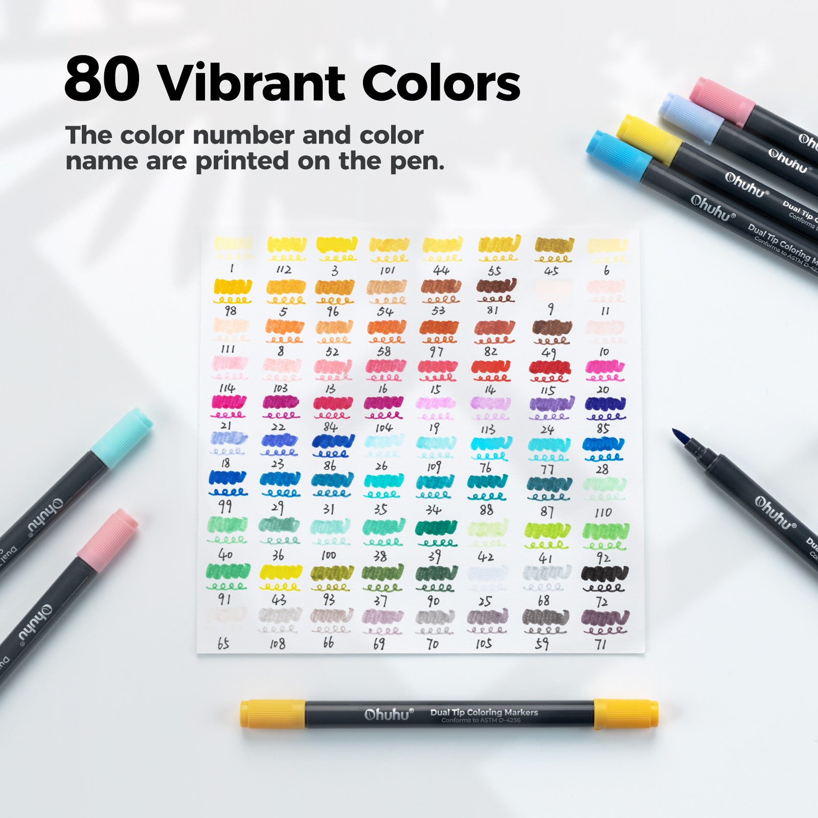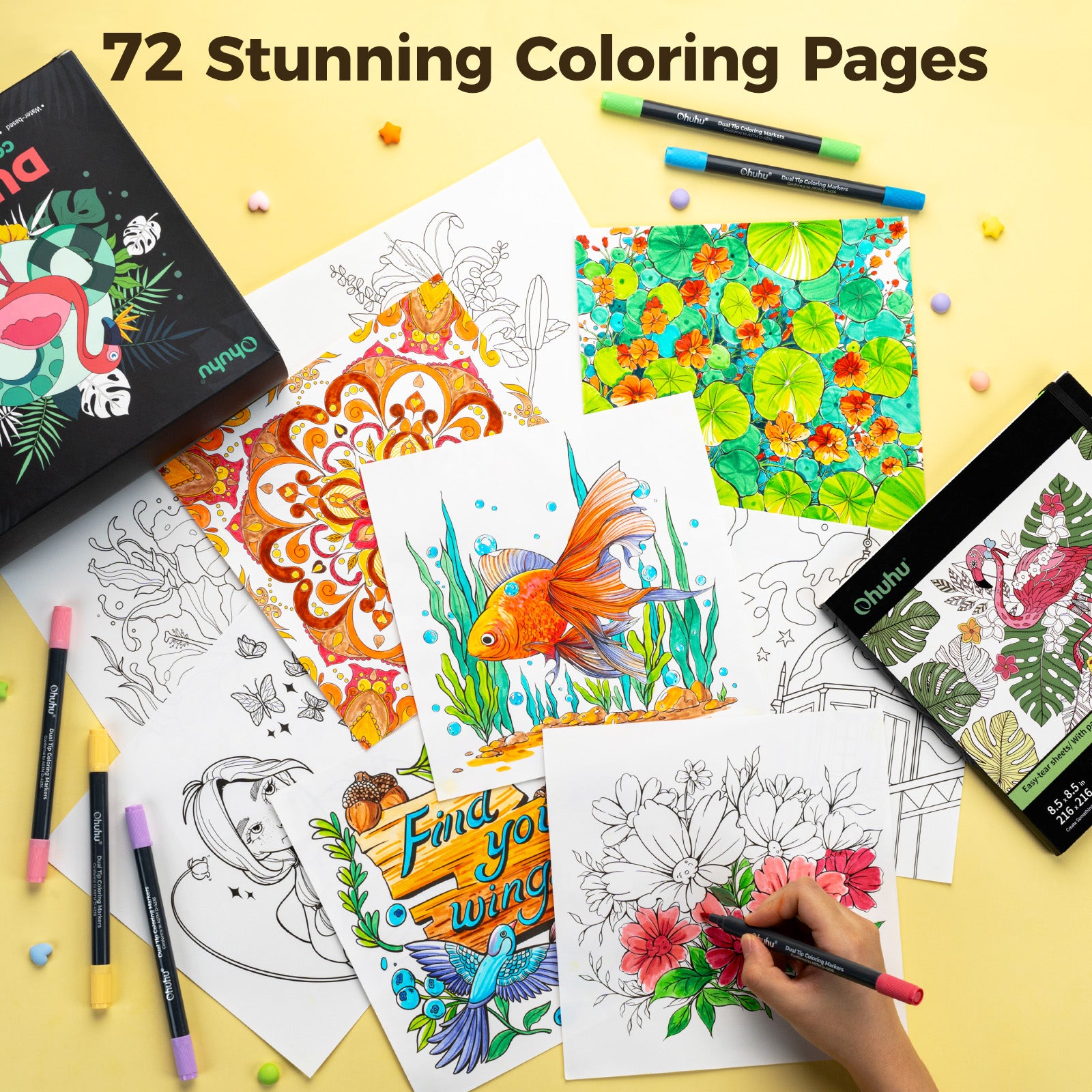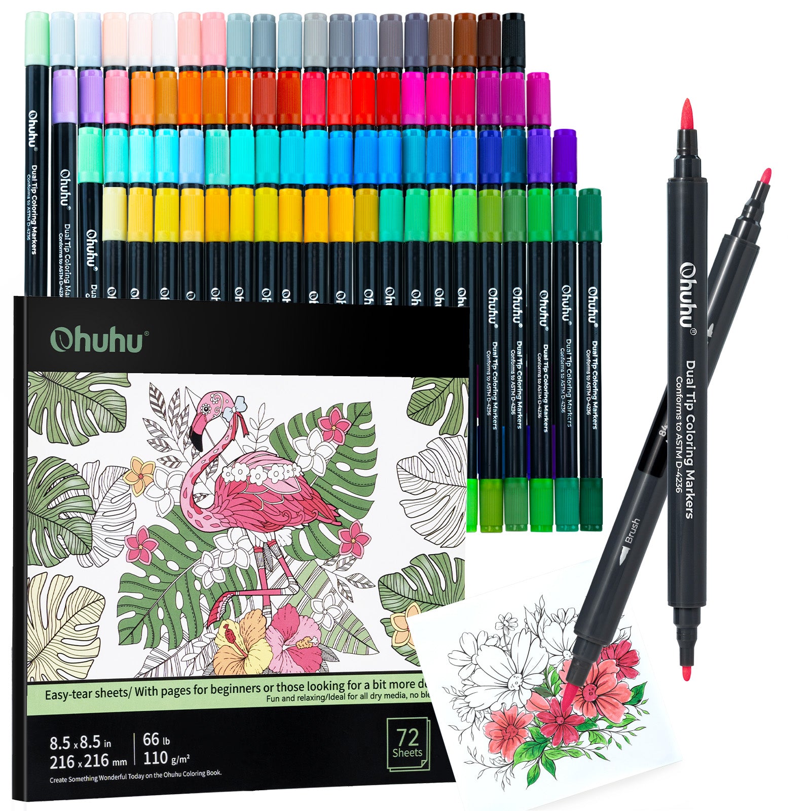 Ohuhu Water Based Brush & Fine Tips Art Markers with Bleed-Proof Coloring Book