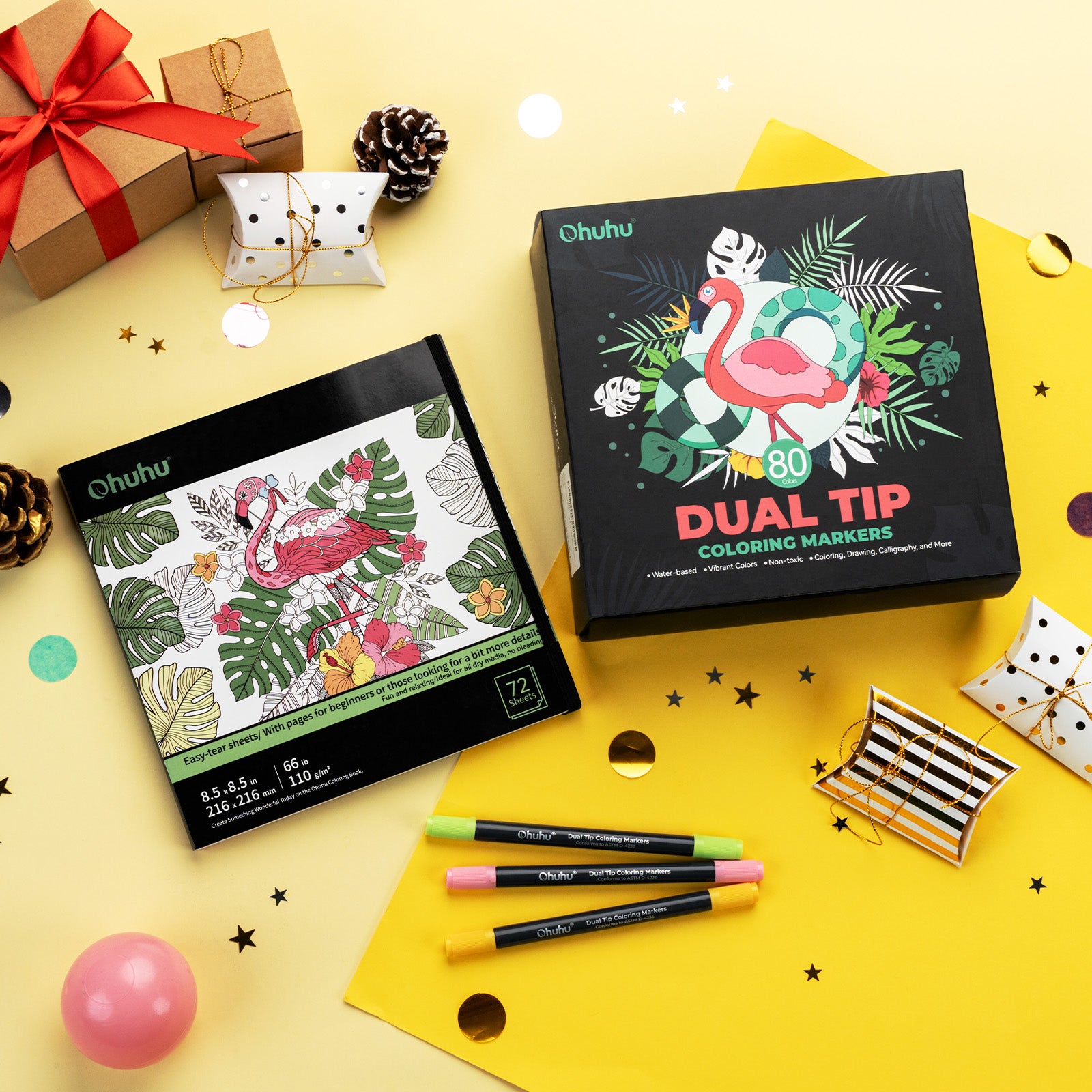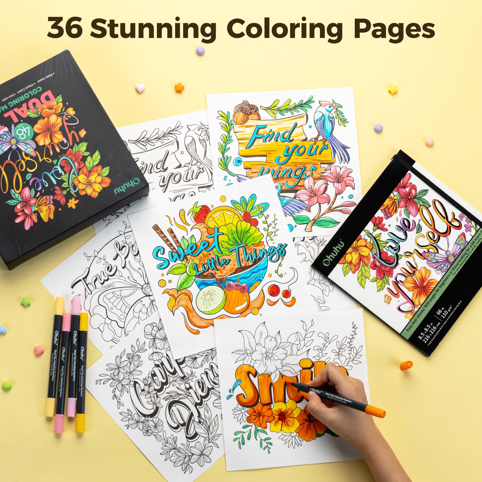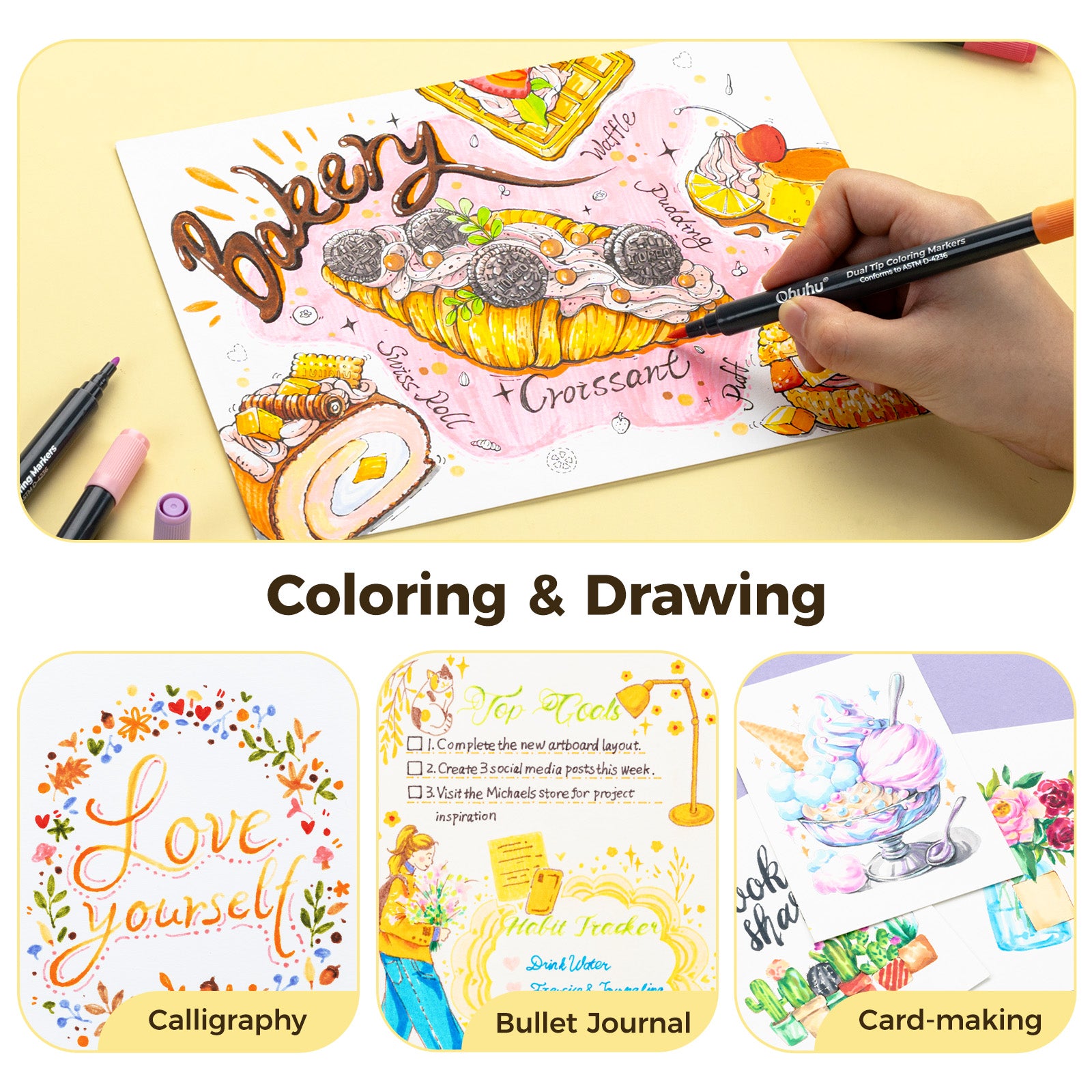 Ohuhu Water Based Brush & Fine Tips Art Markers with Bleed-Proof Coloring Book
