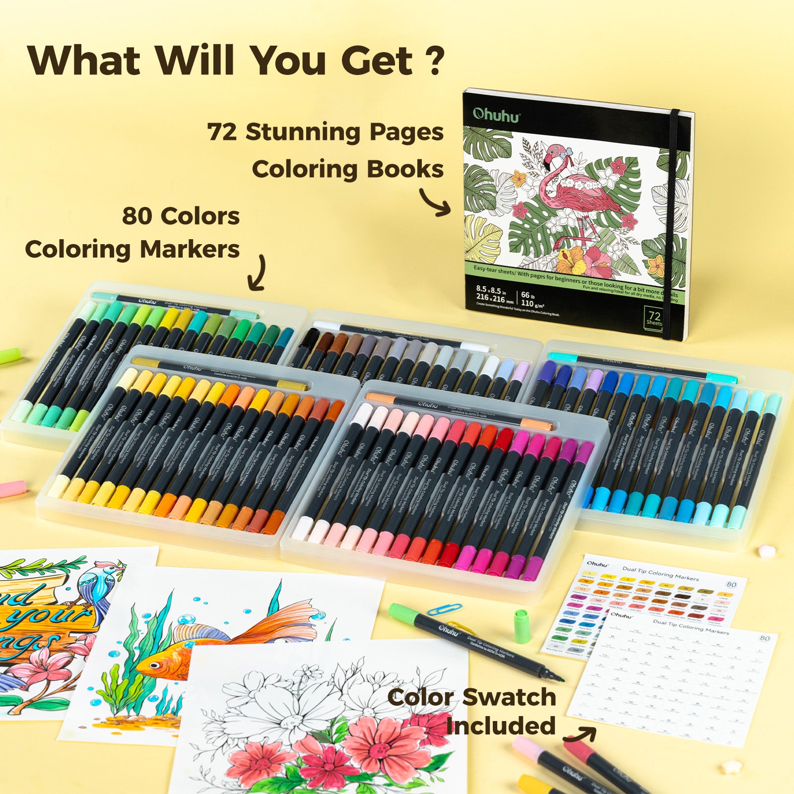 | Colors | 80 Colors+72 Pages Coloring Book, 48 Colors+36 Pages Coloring Book |